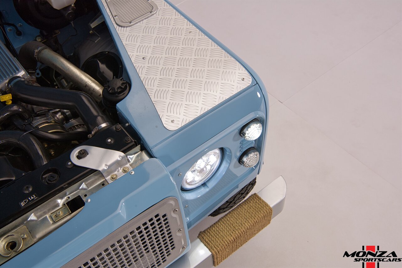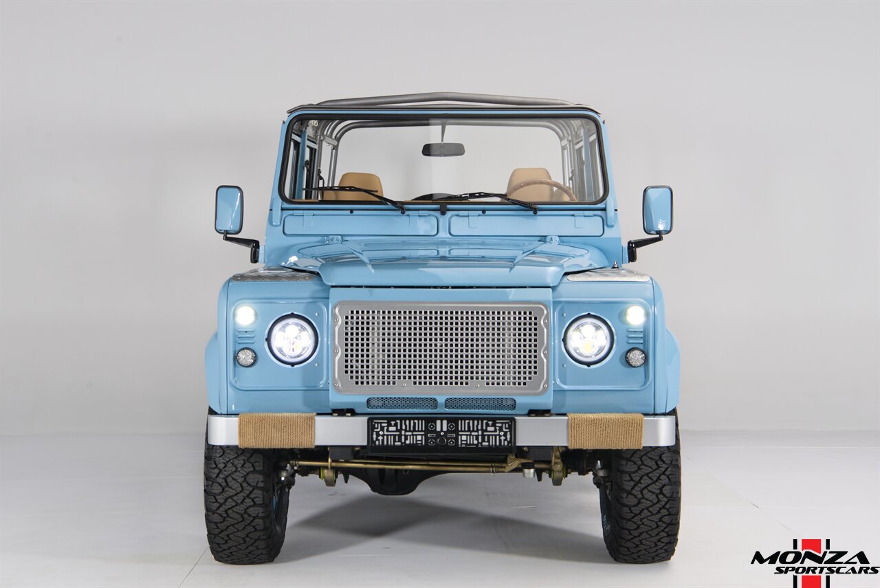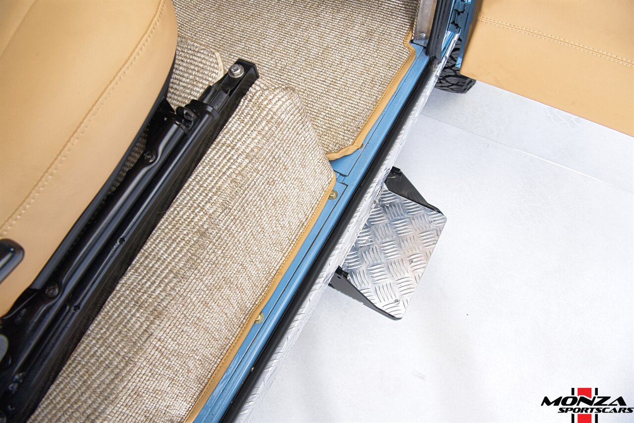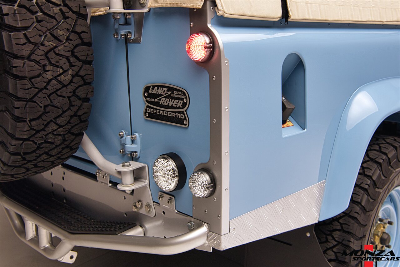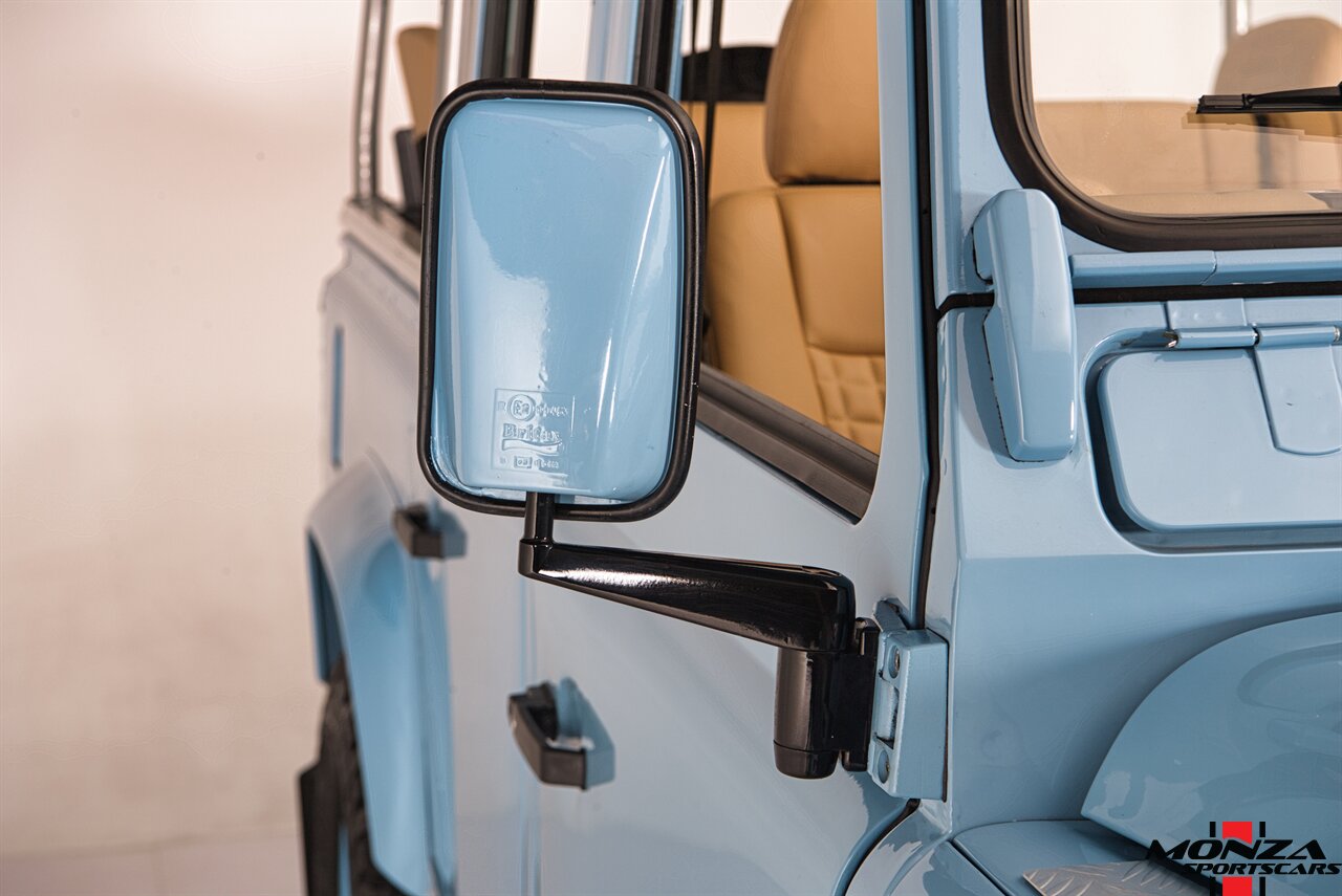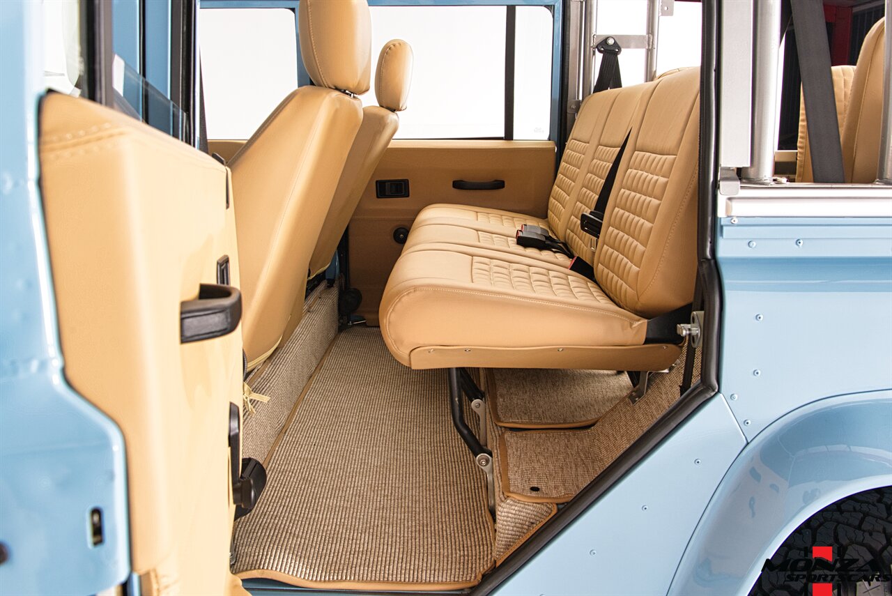This 1998 Land Rover Defender 110 is a left-hand-drive example that is said to have been refurbished in Morocco before being brought to the US in 2025. It is finished in Light Blue over beige upholstery and is powered by a turbodiesel 2.5-liter 300Tdi inline-four linked with a five-speed manual transmission and a dual-range transfer case. Equipment includes a removable beige soft top, a NAS-style rear bumper, LED lighting, 16? Wolfe Style Steel wheels, painted in body color and four-wheel disc brakes along with a wood-rimmed steering wheel, a Pioneer touchscreen head unit, air conditioning, and inward-facing jump seats. This Defender 110 was acquired in 2025 and is now offered with a clean Carfax report and a Texas title that lists the truck as a 1999 model year.
