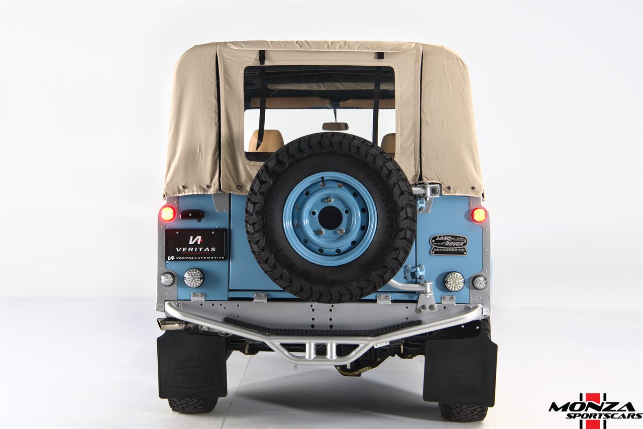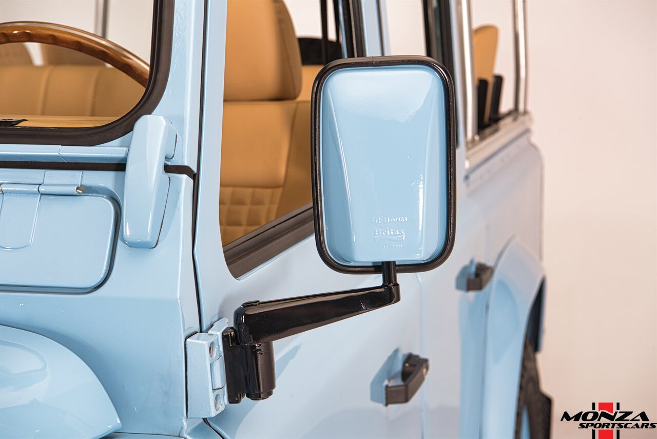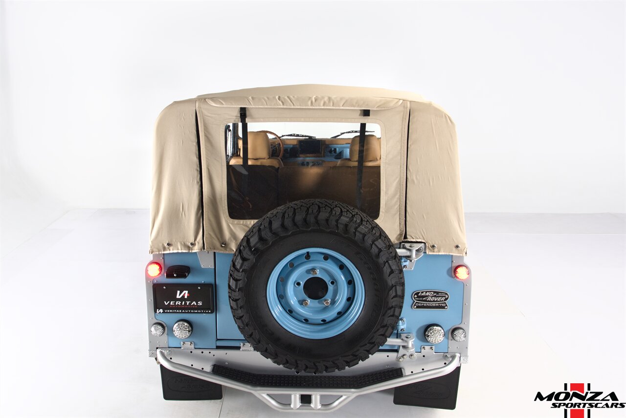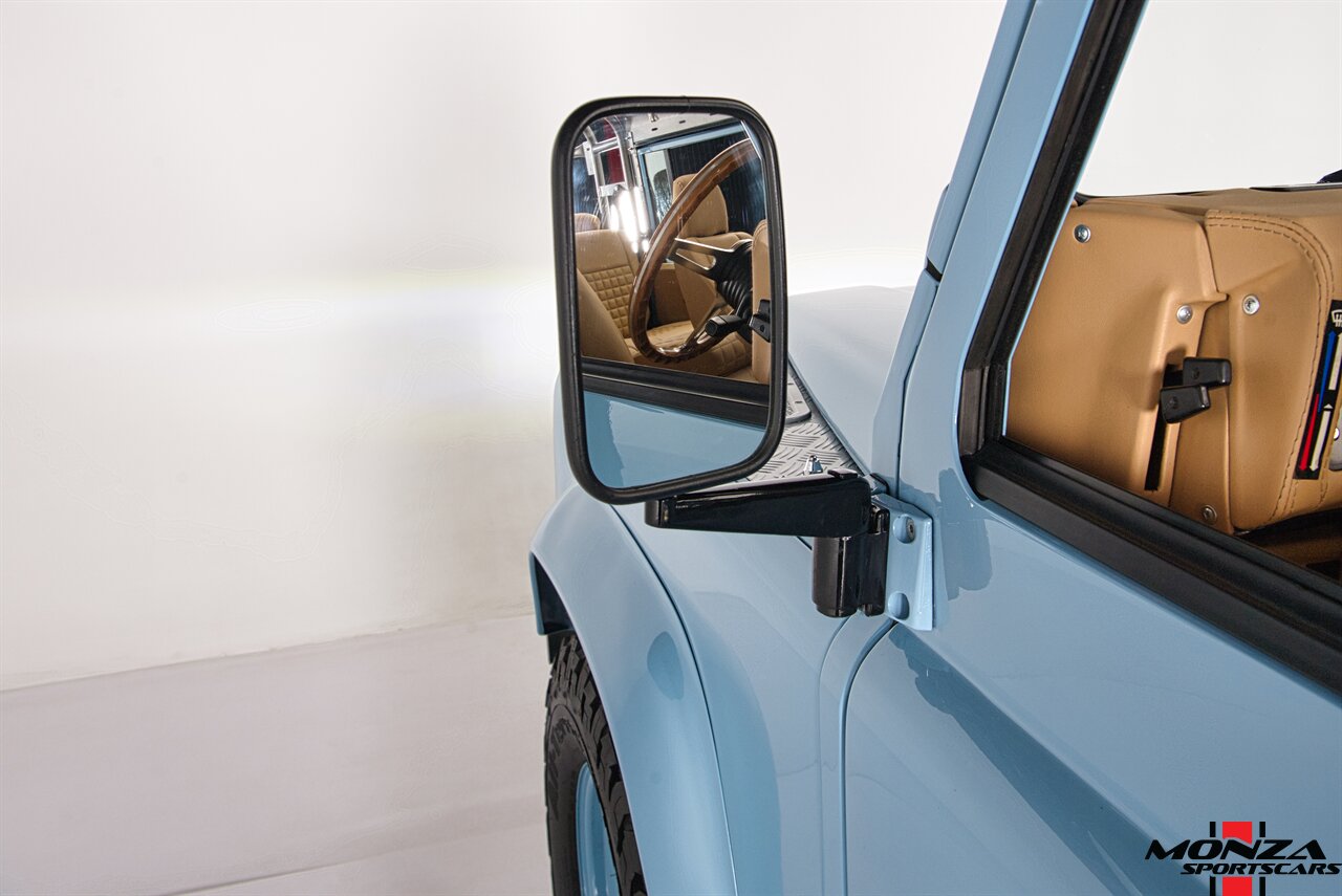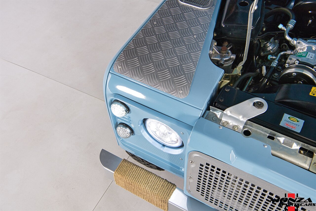 This 1998 Land Rover Defender 110 is a left-hand-drive example that is said to have been refurbished in Morocco before being brought to the US in 2025. It is finished in Light Blue over beige upholstery and is powered by a turbodiesel 2.5-liter 300Tdi inline-four linked with a five-speed manual transmission and a dual-range transfer case. Equipment includes a removable beige soft top, a NAS-style rear bumper, LED lighting, 16? Wolfe Style Steel wheels, painted in body color and four-wheel disc brakes along with a wood-rimmed steering wheel, a Pioneer touchscreen head unit, air conditioning, and inward-facing jump seats. This Defender 110 was acquired in 2025 and is now offered with a clean Carfax report and a Texas title that lists the truck as a 1999 model year.