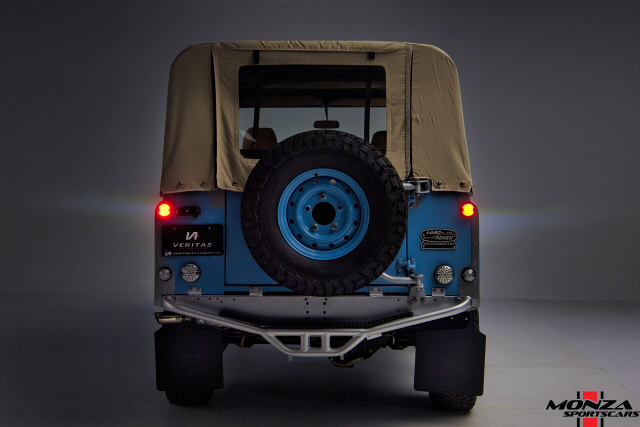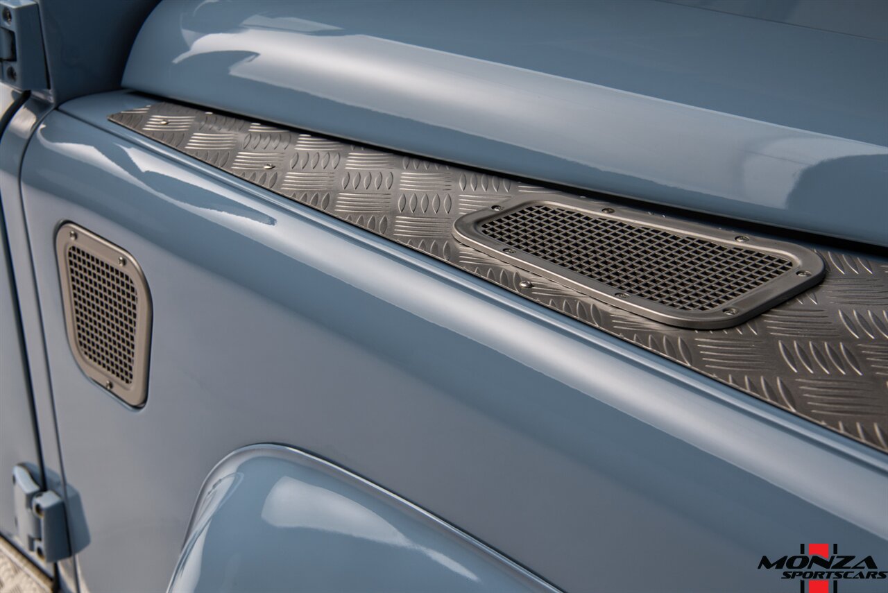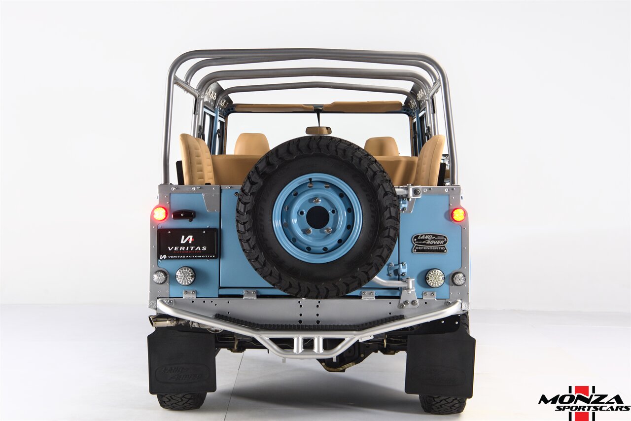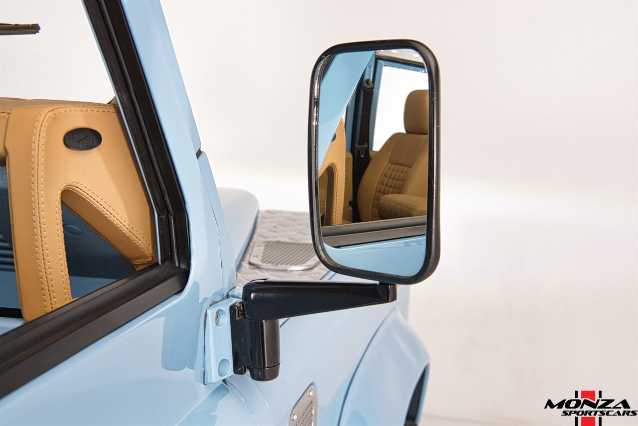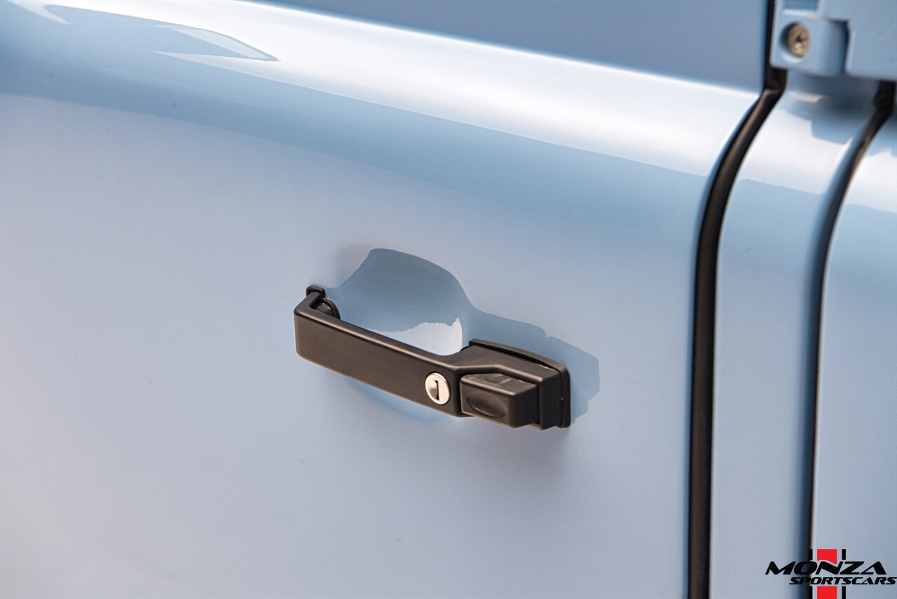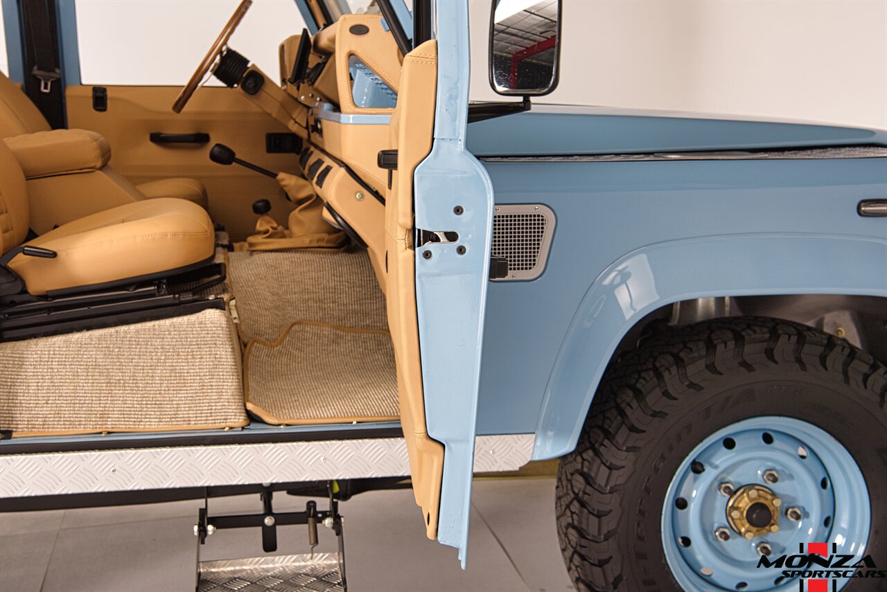 This 1998 Land Rover Defender 110 is a left-hand-drive example that is said to have been refurbished in Morocco before being brought to the US in 2025. It is finished in Light Blue over beige upholstery and is powered by a turbodiesel 2.5-liter 300Tdi inline-four linked with a five-speed manual transmission and a dual-range transfer case. Equipment includes a removable beige soft top, a NAS-style rear bumper, LED lighting, 16? Wolfe Style Steel wheels, painted in body color and four-wheel disc brakes along with a wood-rimmed steering wheel, a Pioneer touchscreen head unit, air conditioning, and inward-facing jump seats. This Defender 110 was acquired in 2025 and is now offered with a clean Carfax report and a Texas title that lists the truck as a 1999 model year.
