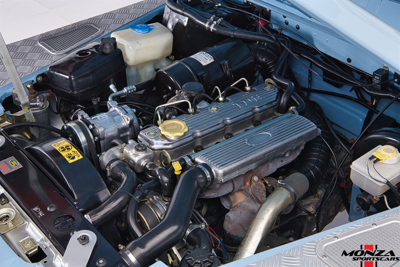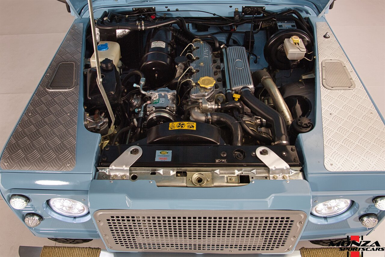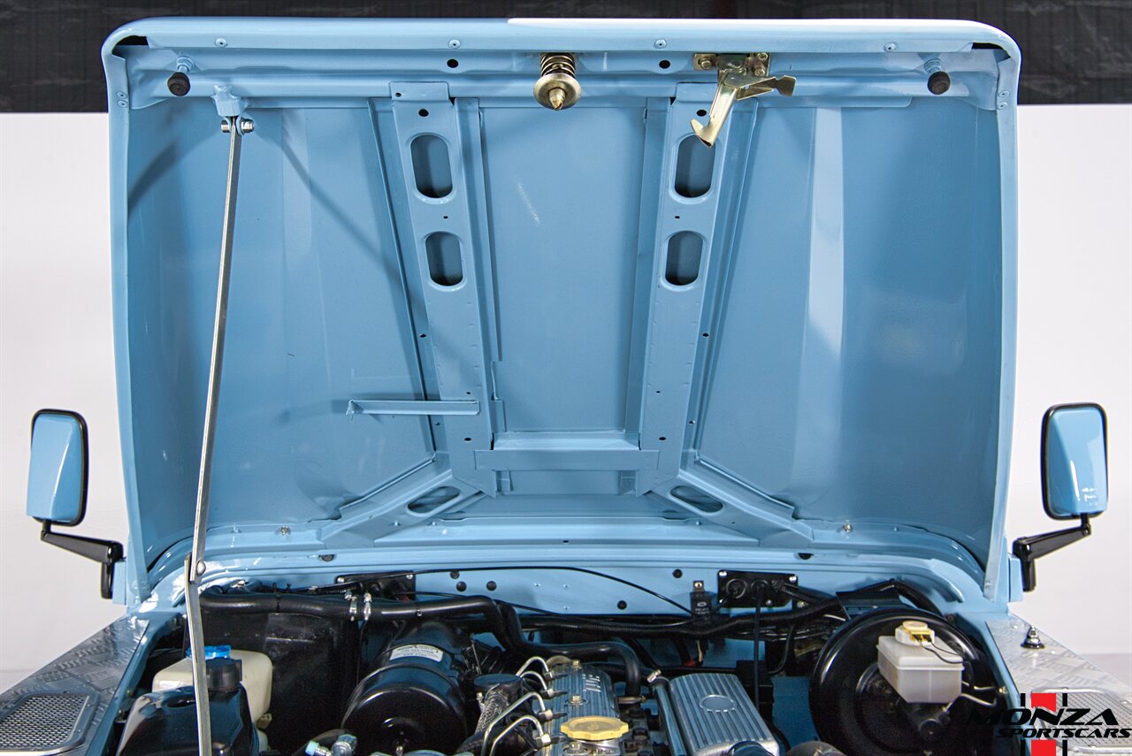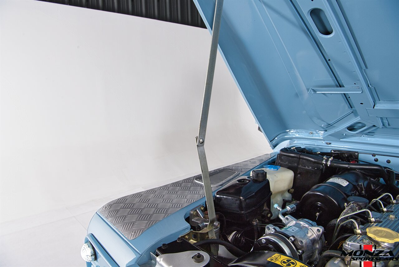 The turbodiesel 2.5-liter 300Tdi inline-four sends power to all four wheels through a five-speed manual transmission and a dual-range transfer case. The truck is equipped with a locking center differential. The drivetrain was overhauled during the refurbishment.