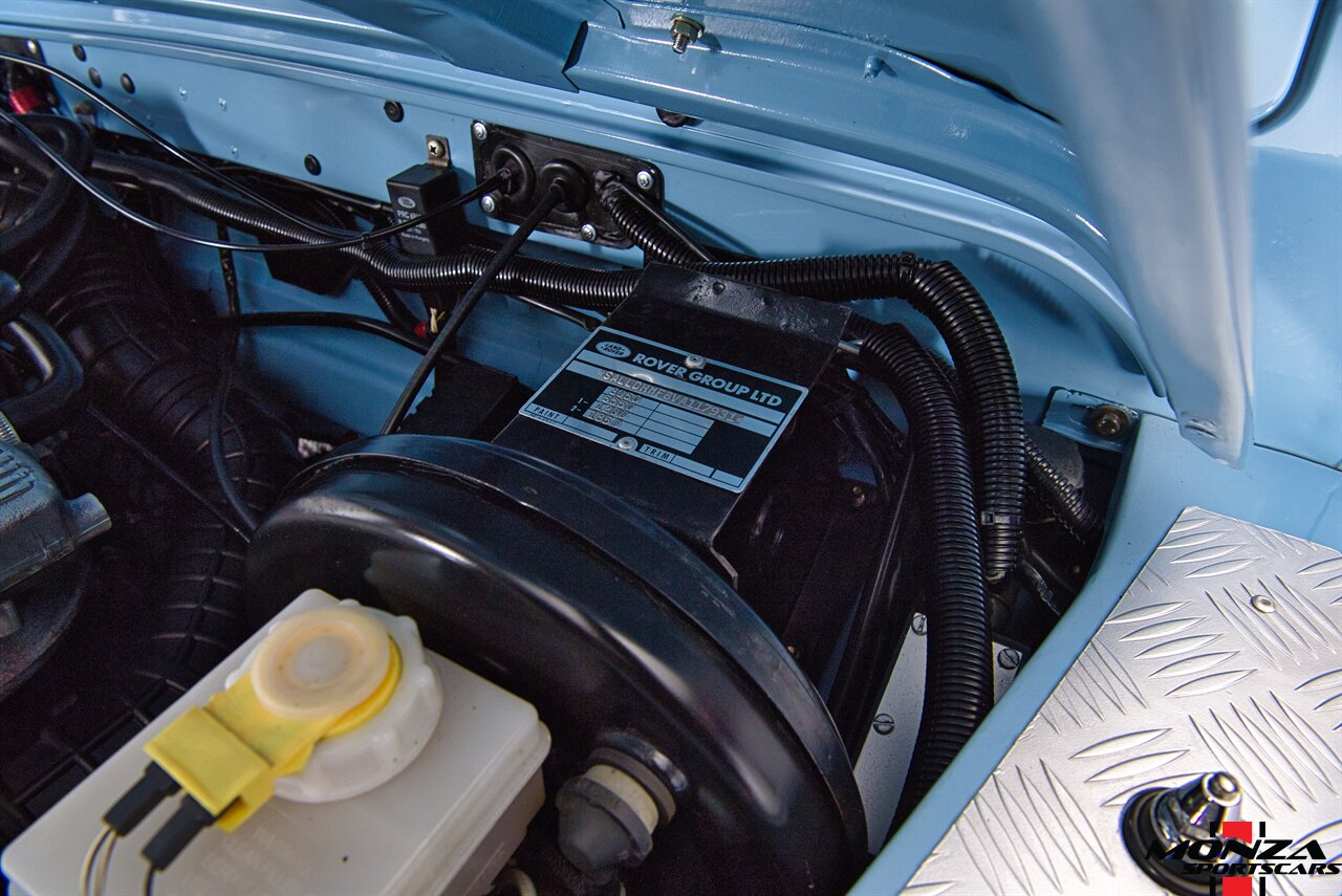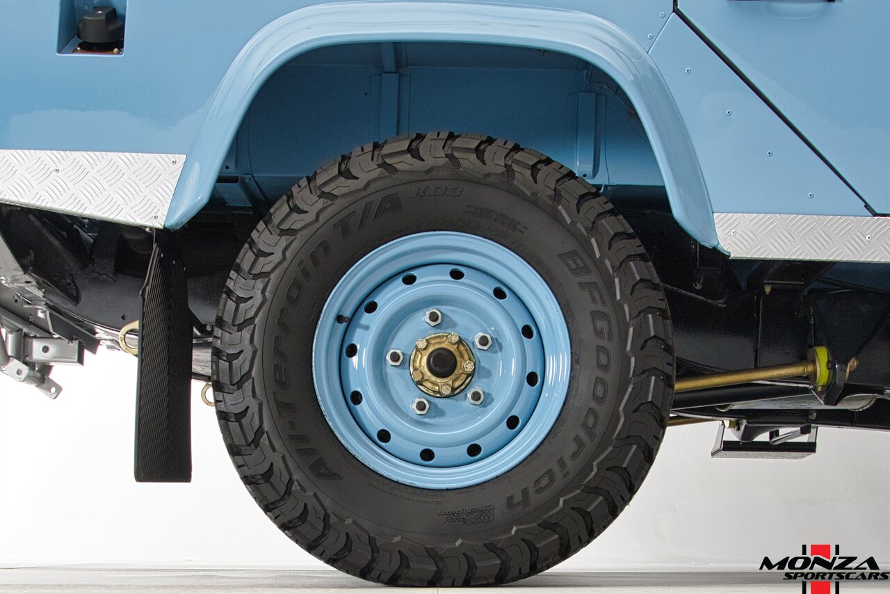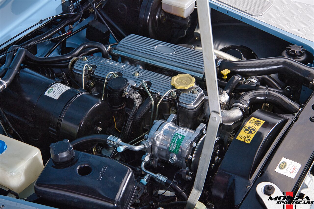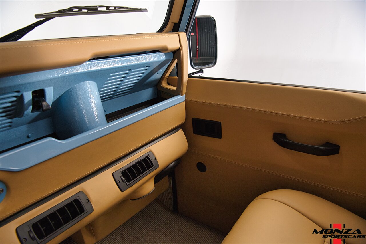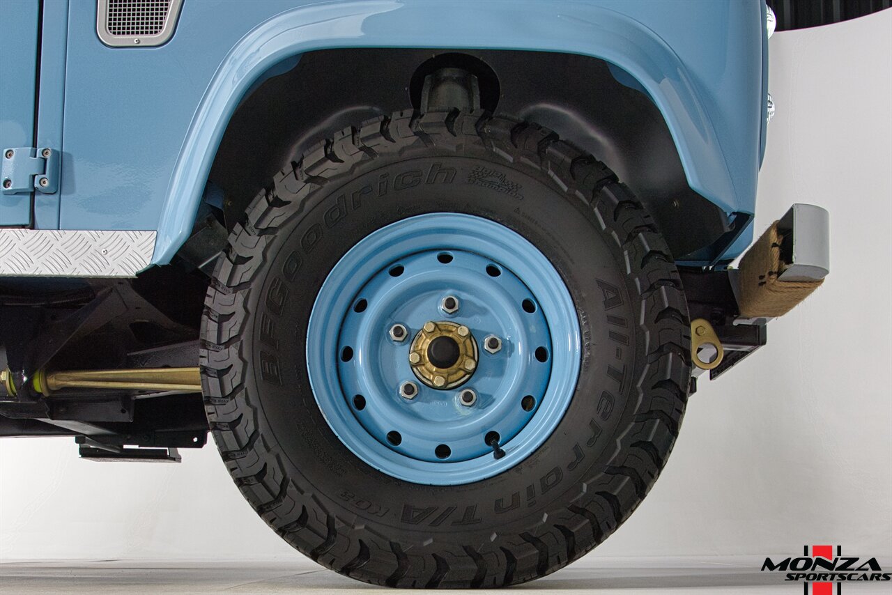 The turbodiesel 2.5-liter 300Tdi inline-four sends power to all four wheels through a five-speed manual transmission and a dual-range transfer case. The truck is equipped with a locking center differential. The drivetrain was overhauled during the refurbishment.
