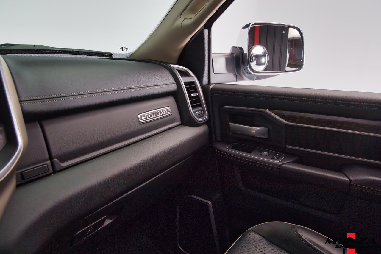 - Laramie Level 1 Equipment GroupIncludes blind-spot monitoring with trailer coverage and rear cross path detection, automatic high beam headlamp control, rain-sensitive windshield wipers, power folding heated exterior tow mirrors, auxiliary mirror-mounted reverse lamps, 2-driver memory for driver seat, radio, exterior mirrors, and pedals, ventilated front seats, and remote tailgate release.