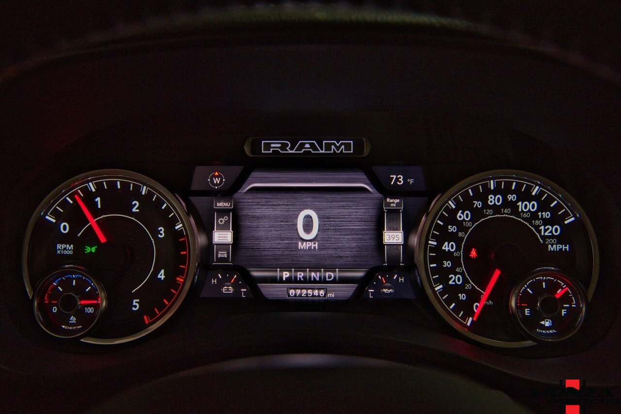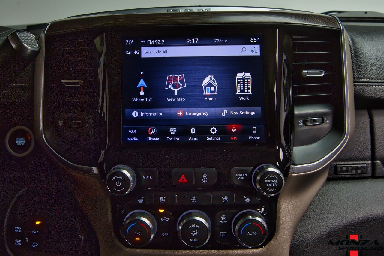 Equipped with the Laramie Level 1 Equipment Group, this truck offers a refined interior environment with premium materials, leather trimmed seating, and a wide array of comfort and technology features. The cabin is centered around the Uconnect 4C navigation system with an 8.4 inch touchscreen display, providing integrated navigation, Bluetooth connectivity, and smartphone compatibility through Apple CarPlay and Android Auto. The thoughtfully designed interior provides excellent space and ergonomics for both driver and passengers, creating a comfortable environment whether the truck is used for daily driving, job site duty, or cross country travel.